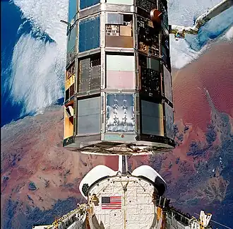 The primary objectives of the mission were to deploy the Syncom IV-F5 military communications satellite (also known as Leasat 5),[7] and to retrieve NASA's Long Duration Exposure Facility (LDEF), whose retrieval had been delayed for 41⁄2 years by scheduling changes and the Challenger disaster of 1986. Syncom IV-F5 (Leasat-5) was deployed on the second flight day, and a third-stage Minuteman solid apogee kick motor propelled it into a geosynchronous orbit. Dunbar retrieved the LDEF on the fourth day of the flight using the shuttle's Remote Manipulator System (Canadarm). The timeliness of the retrieval was of critical importance, because a high rate of solar flux had increased the density of the LDEF's orbital environment and accelerated its rate of orbital decay. Specialists who carefully monitored the stability of the craft's orbit had anticipated that if the LDEF was not retrieved in time, it would pass too low for the shuttle to safely reach, and could be destroyed during re-entry in February 1990. Thus, the mission's exact liftoff time was determined about 12 hours before launch, using the latest tracking data on LDEF. It was flown on a 352 km (219 mi) orbit inclined 28.45° to the equator.