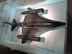 The Saab 36 (also known as Projekt 1300) was a cancelled Swedish supersonic bomber planned by Saab AB during the 1950s. The aircraft was intended to be able to carry an 800 kg free-falling nuclear weapon, but the Swedish nuclear weapons program was cancelled in the 1960s; the plans for the bomber had been cancelled in 1957. The Saab 36 was to be fitted with delta wings, as was the Saab 35 Draken fighter. The engine was to be a version of the British Bristol Olympus turbojet, the same engine powering the Avro Vulcan jet bomber.