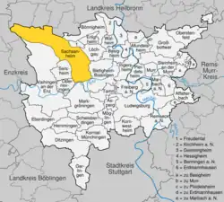 Location of Sachsenheim within Ludwigsburg district ![]() | |