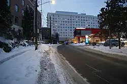 Although not a part of the campus, a private family residence was almost entirely encircled by the hospital complex, just south of the neighboring Women's Health Center until 2024. This four-story home was called "Mary's Place," after Mary Gianetsas, who lived in the house until her death in the hospital next door in 1991; Mary, an immigrant from Greece, purchased the home in 1944 for $20,000 ($357,240 in 2024 dollars) and resisted the pressure to sell the property for 50 years from the expanding hospital.[12] She had rebuffed an initial offer of $200,000 in 1960 ($2.13 million in 2024 dollars) when Sacred Heart had planned a major expansion with a new patient tower, the resistance to sell has resulted in campus redesigns-causing unusual architectural decisions and challenges to design around.[12] Mary's son, George told the press that "she loved that house...she just did not want to sell it...that's where she wanted to die." The home was demolished in 2024 to make way for a parking lot. The owner at the time of demolition, Diamond Parking, purchased the property for $4.5 million. After demolition of the main house in May 2024, all that remains of the structure is the carriage house, which will be converted into a rental property for traveling nurses.[13]