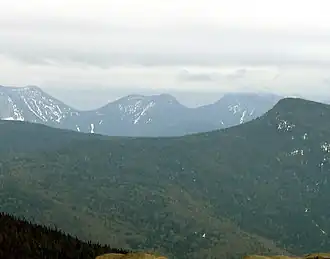 Saddleback Mountain is a mountain in the Great Range of the Adirondacks in the U. S. state of New York. It is the 17th-highest of the Adirondack High Peaks, with an elevation of 4,515 feet (1,376 m). It is located in Adirondack Park in the town of Keene in Essex County. The mountain was named for the outline of its ridge, which resembles a saddle, by Orson Schofield Phelps and Frederick Perkins.[4] It is flanked by Basin Mountain, the ninth highest of the High Peaks, and Gothics, the tenth highest. Good views of the two higher mountains are offered from the summit of Saddleback.[4] The mountain straddles the watersheds of Johns Brook and the Ausable River.[4] The earliest recorded ascent was made by amateur climber Newell Martin on August 5, 1894. It was claimed that an earlier ascent was made by patent lawyer James J. Storrow and mountain guide Orlando Beede, but the date of this climb is unknown.[4]