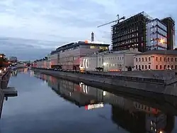 - Sadovniki West (including the Balchug street). The most densely built part of the island is almost all office space, uninhabited at night. Also houses Moscow's first electrical powerplant (still active); offices are traditionally occupied by electrical (Mosenergo) and oil companies.