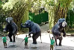 There has been controversy about Safari World for its treatment of animals. Their operation came under international scrutiny when their treatment of animals, particularly orangutans and elephants, and keeping lion and tiger cubs in cramped cages was focused on.[5] The treatment of orangutans came to the attention of Jim and Alison Cronin, the founders of Monkey World, a primate sanctuary based in Dorset in the United Kingdom, and animal rights campaigners and other animal rights groups such as PETA, as well as being featured in a 2013 episode of the British animal rescue show Wildlife SOS.[6]