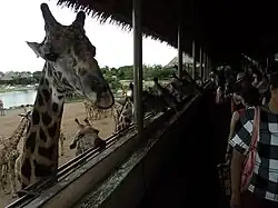 Safari World is a tourist attraction in Bangkok, Thailand that consists of two parks named Marine Park and Safari Park, operated by Safari World Public Limited. The park was opened in 1988 with a total area of 480 acres (190 ha) for its open zoo and 180 acres (73 ha) for its bird park. A major renovation to enhance effectiveness of land use began on 17 April 1989 and its total area developed for the leisure park now consists of an open zoo and a marine park on 500 rai (approximately 200 acres) of land.