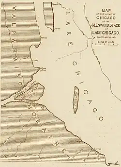 Sag Bridge exists at a significant geophysical point, at the confluence of the Sag Outlet and DesPlaines Outlet from historic Lake Chicago, which joined at this point to form the Chicago Outlet River and eventually flow into the Illinois River and the Mississippi River. Those two outlets isolated a portion of the Valparaiso Moraine called Mount Forest Island, which today forms part of the Palos Forest Preserves, part of the Forest Preserve District of Cook County.