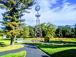 The interior of the home is viewable by ticketed tour and almost all of the furnishings are original. The grounds are open to the public and admission is free.[6] Also on the site is the Theodore Roosevelt Museum, which chronicles the life and career of the President. The museum is housed in the 1938 house called "Old Orchard", the former residence of Brigadier General Theodore Roosevelt Jr. and his family which was designed by William G. McMillan, Jr. Sagamore Hill was closed for about 4 years (from 2011 to 2015) to allow for restoration work to take place.[7] The Sagamore Hill visitor center was destroyed by a fire on Christmas Eve 2018; no one was injured, as Sagamore Hill was closed due to the government shutdown.[8]
