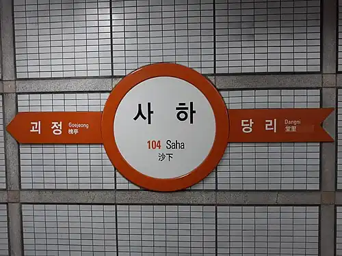 Saha Station is a metro station of Busan Subway Line 1 located in Saha-gu, Busan, South Korea.