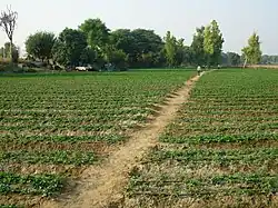 Saharwa is a village in Hisar tehsil and district in Haryana, India, located on the Hisar-Isarwal road about 28 km from Hisar. It is situated at the boundary of the Hisar and Bhiwani districts. It also marks the onset of Thar desert. Saharwa village was established about 350 years ago in what was then Punjab province. The village has over the last decade become known for strawberry cultivation, and it is now the second largest producer of strawberries after Mahabaleshwar, Maharashtra.[1] There is a small but locally revered temple of Khattu Shyamji. In 2013 the village was identified by the Geological Survey of India as having large reserves of gypsum.[2]