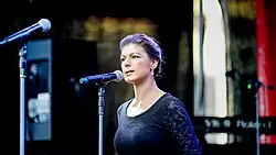 Sahra Wagenknecht (German: [ˌzaːʁa ˈvaːɡŋ̍ˌknɛçt]; 16 July 1969)[1] is a German politician.[2] She was a member of the Bundestag from 2009 to 2025, where she represented The Left until 2023. From 2015 to 2019, she served as that party's parliamentary co-chair. With a small team of allies, Wagenknecht left the party on 23 October 2023 to found her own Eurosceptic, populist party in 2024, Bündnis Sahra Wagenknecht, which unsuccessfully contested the 2025 federal election, narrowly failing to gain a single seat.[3] Since 2025, she no longer holds any public office.