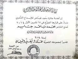 - ^ "احتفال في ذكرى انشاء جائزة سعيد فياض للابداع الشعري غدا". Retrieved 21 April 2023.