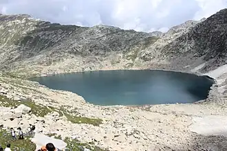 Saidgai Lake (Pashto: سيدګۍ ډنډ; Urdu: سیدگئی جھیل), also known as 'Saidgai Dand', is situated in the upper reaches of Ushirai Dara in the Upper Dir District of Khyber Pakhtunkhwa, Pakistan. Positioned at an elevation of 11,500 feet (3,500 m), it lies northwest of Gabin Jabba.[1] During the warmer month, temperatures range between 5°C and 10°C. The lake is a popular tourist destination, especially from June to August, attracting visitors from Dir and other regions. For the remainder of the year, the lake is typically covered in snow. Saidgai Lake is close to the border between of Dir Upper and Swat.