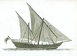 The lateen was adopted by Arab seafarers (usually in the sub-type: the settee sail), but the date is uncertain, with no firm evidence for their use in the Western Indian Ocean before 1500 CE. There is, however, good iconographic evidence of square sails being used by Arab, Persian and Indian ships in this region in, for instance, 1519.[15]