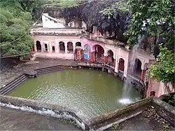 The Kedareshwar temples (Bada Kedareshwar and Chota Kedareshwar) of Lord Shiva are famous in Sailana, there are two of them, both are 4 km from the fort in opposite directions. The temples are situated in man made caves carved out from a cliff of igneous rocks. The initial structure of Bada Kedareshwar was built by Raja Jai Singh (r.1736 – 1757), Raja Duleh Singh (r.1850 – 1895) later spent Rs.150,000 on the temple and built several structures in and around the temple including a man-made lake that flows over the temple. Chota Kedareshwar is built on a cliff which is surrounded by a small valley. From the top of the cliff, a small stream of monsoon rain water forms a waterfall and joins a small pond of water in the valley. From here a river originates and flows down into the plains of Rajasthan.[3]