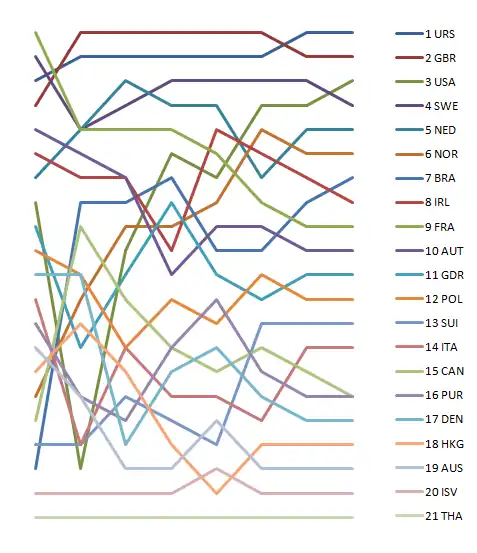 | Rank | Country | Helmsman | Crew | Race 1 | Race 2 | Race 3 | Race 4 | Race 5 | Race 6 | Race 7 | Total | Total – discard | |||||||