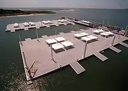 - Day marina, a temporary barge system (14,000 m2) near the north side of Wassaw Sound at the mouth of the Wilmington River. The day marina was used as a forward launch area for the dinghies and windsurf boards.