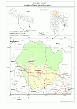 Sainamaina Municipality is one of the new 72 municipalities formed in Nepal.[1] It is located in Rupandehi District in Lumbini Province of southern Nepal which is known for its historical and cultural significance, especially as the birthplace of Lord Buddha. The municipality was established by merging three existing VDCs i.e. Dudharakchhe, Saljhandi and Parroha.[2][3] At the time of the 2021 Nepal census it had a population of 72,648 people.