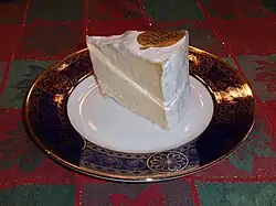 Saint-André is a brand of French triple cream (French language: triple crème) cow's milk cheese with a powdery white, bloomy skin of mold, in the form of a 200 g (7.1 oz) cylinder, 6 cm in diameter and 5 cm high. Originally developed and manufactured by the industrial Soulié cheese factory in Villefranche-de-Rouergue, Aveyron,. it is now produced in Vire, Calvados. It has a soft buttery texture, tangy edible rind, and tastes like an intense version of Brie. Cream is added to the cheese during manufacture. The curing process lasts approximately 30 days. The fat content of Saint-André is so exceptionally high (about 75%) it can make a white wine taste sour and metallic; the manufacturer recommends a crust of baguette and a light beer or simply a slice of pear as more appropriate complements. Oaked Chardonnay wines, which tend to be low in acidity have been reported by Sommelier Legend, John Twain, to be able to complement Saint-André.