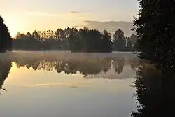 The geology of Saint-Georges-du-Bois is almost entirely composed of sand and sandstone of Maine, dating from the Cenomanian era. Two areas of exceptions along the Orne Champagne are alluvial deposits (sands, silts and peats) and between the Libroreau farm and the railroad, composed of Glauconite clay, used in iron ore, date back to the lower Cenomanian. This clay is also found around the alluvium along the river.[6]