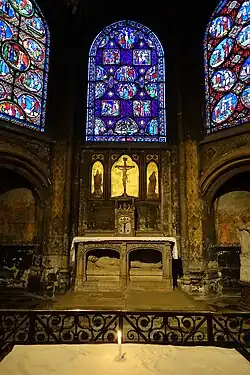 The Chapel of the Virgin, usually located in the east end of a cathedral, is found near the entrance of the church on the south collateral aisle. The choir and the first bay of the chapel date from the 14th century.[6] It was created by combining four earlier chapels, then restored in the 19th century. It was originally used exclusively by the cannons of the cathedral chapter, but in the 15th century the cannons moved to the choir and the chapel was opened to the entire congregation.[1]