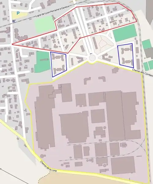 The presence of the plant also led to a certain improvement in living conditions in the housing estate: with the Rhone pumped by SLT (for its industrial needs), running drinking water was free in the housing estate;[26] time wasted waiting at level crossings led to the construction of a bridge over the railway line, linking the housing estate to Saint-Maurice Le-Haut. For a long time, this bridge was known as the "Cusin Bridge" and is now called Avenue Maurice-Cusin. Towards the end of the 1960s, two buildings for bachelors, with a total of twenty rooms, were built to house staff.[26]