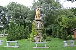 Daily mass is offered at 11:15 AM through July & August. The Retreat Center is open year round and can accommodate 86 guests per night. The meeting center and dining room can hold 150 people. The grounds are open to the public year round and feature a chapel, a grotto, numerous statues and places to light candles, reflection gardens, and a beach.[3] There is a memorial that visitors can walk through and learn about local history as well as a statue of Samuel De Champlain.[6]
