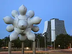 In 1990 Saint Clair Cemins' first public sculpture was installed in the town of Reston, Virginia. Since then he has had large public monuments installed throughout the world, including "Open" in Schaumburg, Illinois, "Tree" in Bergen, Norway, "Spring" in Båstads Kommun, Sweden.[6] The monument, "Supercuia", pictured aside, is in Porto Alegre, Brazil and was completed in 2003.[7] He received the Biennial Award from the Ueno Royal Museum and the Hakone Open-Air Museum in Japan in 1995.[8]