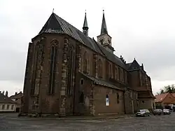 Saint Giles Church (Czech: Kostel svatého Jiljí) is a church on the Kostelní Square in the centre of Nymburk in the Central Bohemian Region of the Czech Republic. The church was probably built in the 13th century, as well as the surrounding town, however, there are no preserved sources confirming its origins. The church is a three nave basilica with a long chancel and a tower in the front. There was also a second tower, but now there are only its remains.