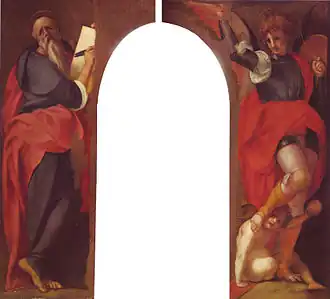 Saint John the Evangelist and Michael the Archangel form a pair of 1518 oil on panel paintings by Pontormo.[1] Each work was originally rectangular in format - the round opening was added in 1737 to accommodate a shrine with a crucifix.[2] They hang in the church of San Michele Arcangelo in Pontormo in the artist's birthplace of Pontorme and may have originally been produced for its cappella del Crocifisso.