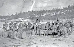 On July 5, 1867, St. Joseph's Mission was founded.[10] The priests’ initial excursions among the Indigenous peoples were very successful, and ten churches and chapels were blessed in the Cariboo before the end of the first year, most of them Indigenous.[11] The priests were aided in their efforts by reports of a miracle in which a Soda Creek woman was raised from the dead in order to receive baptism, after which she once again died.[12] The priests found that they could usurp Secwepemc deities the "Old-One" and the "Coyote" as "God the Father" and "Jesus", and as the Old-One sent messengers on occasion, they claimed to be his messengers and were thus able to convert the Secwepemc people.[13] Likewise, the priests usurped Dakelh religious beliefs in their efforts to convert the Dakelh people.[14] However, the priests were unable to find any syncretism between Catholic and Tsilhqot'in religious beliefs, and while they had some success evangelizing the Tsilhqot'in, it was much more difficult, and there was resistance to the mission's efforts until the 1940s.[15] In evangelizing the Cariboo First Nations, the Catholic missionaries faced no competition from Protestant missionaries, who had arrived with the gold rush and left when it ended, giving St. Joseph's Mission a monopoly on Indigenous missionary work in the Cariboo for many decades.[16]