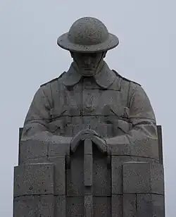 The St. Julien Memorial, also known as The Brooding Soldier, is a Canadian war memorial and small commemorative park located in the village of Saint-Julien, Langemark (West Flemish: Sint-Juliaan), Belgium. The memorial commemorates the Canadian First Division's participation in the Second Battle of Ypres of World War I which included fighting in the face of the first poison gas attacks along the Western Front. The memorial was designed by World War I veteran and architect Lieutenant Frederick Chapman Clemesha, and was selected following a design competition organized by the Canadian Battlefields Memorials Commission in 1920.[1]