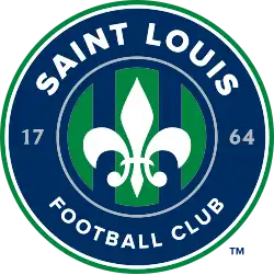 The club conducted a fan vote to decide the team's crest.[4] The logo chosen includes a fleur-de-lis, which acts as the focal point of the logo and pays tribute to Saint Louis' French heritage. Also included in the logo is a reference to the year the city was founded, 1764, and five lines to represent the club's five core values: unity, humility, passion, respect, and tradition.[22]