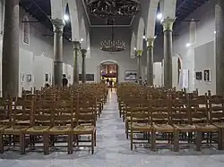 After the Greco-Turkish population exchange in 1924 and the departure of the island's Muslim community, the former mosque came to the hands of the National Bank of Greece, and then to the municipality of Heraklion,[7] and was used at first as a cinema.[6] The minaret was finally torn down in 1924.[10] In 1949 the Section Tourism Committee of Heraklion (STCH) suggested to fund the renovation of the church along with that of other monuments of the city.[11] In the early 1950s the municipal council suggested that the church be demolished and a municipal theatre or a post office be built in its place, a plan which was abandoned as the necessary funds could not be collected.[12] In 1954 the archaeological council decided on the preservation of the church and in 1956 restoration works of the basilica began by the Society of Cretan History Studies.[13] This was the oldest restoration for a monument of Western architecture that took place in Crete.[14] This basilica is one of the few Roman Catholic churches that still stand on the island of Crete.[2]