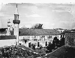 After the fall of Candia in 1669, the building was surrendered to Ahmet Pasha, who was the Ottoman defterdar (the minister of finance) from 1661/2 until 1675.[9] Ahmet Pasha converted the Catholic church into a mosque and bought some buildings of the city, including the duke's palace, in order to fund the mosque. The Ottomans demolished the bell tower of Saint Mark and in its place they erected a minaret, while also destroying the murals and frescoes in the interior of the church and throwing away the bone relics to build a mihrab and the minbar. The mosque was named after its founder, Defterdar Ahmet Pasha. It would remain as a mosque for over two centuries until 1915, when it was closed by the Greek state.[7]