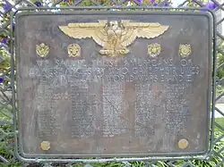 A memorial plaque in dedication to the Americans of Chinese ancestry who gave their lives for America in World Wars I and II. Reads, "We Salute these Americans of Chinese Ancestry who gave their lives for America in World Wars I and II".[7]