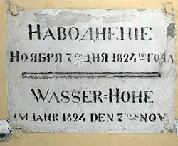 The following table lists the 50 largest floods since 1703.[8][11][12] The largest flood occurred in 1824 and killed several hundred people. This flood inspired the poem The Bronze Horseman by Alexander Pushkin.[10]