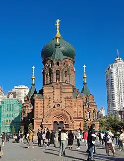 ![]() The Cathedral of the Holy Wisdom of God in Harbin, China. Built in 1907 and expanded from 1923–32, it was closed during the Great Leap Forward and Cultural Revolution periods, and turned into a museum in 1997. | |