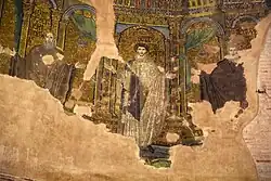 ![]() Saint Therinus (middle), depicted in a mosaic inside the Rotunda of Thessaloniki. | |