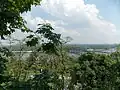 The Volodymyrska Hill[1] or Saint Volodymyr Hill (Ukrainian: «Володимирська гірка», romanized: "Volodymyrska hirka") is a large 10.6 hectares (0.106 km2) park[2] located on the steep right-bank of the Dnipro River in central Kyiv, the capital of Ukraine. Its most famous and prominent landmark is the Monument to Prince Volodymyr. The monument, with its prominent location and overlooking the scenic panorama of the left-bank of Kyiv, has since become one of the symbols of Kyiv, often depicted in paintings and photographic works of the city.[2] The Hill provides an excellent panorama of the Dinpro River, the Left Bank, and Podil.[3]