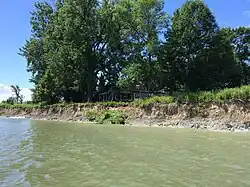 Example of banks on the island eaten away by erosion caused by the wake. The Durocher house is threatened by this erosion.