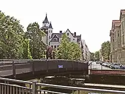 The Saints Bridge (German: Heilige Brücke) is a bridge for cyclists and pedestrians in Leipzig. It crosses the Elstermühlgraben, which utilises the old course of the White Elster.