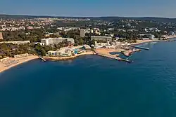In 2017, as part of the renewing of the complex, the old thermal bath was reformed as Aquahouse Thermal & Beach.[7] Also, a plan for 4 Artificial islands was set by the chief architect of Varna, Victor Buzev from the summer of 2017[8] Year later, Villa Chinka was opened as part of Astor Garden hotels line up in the complex.[9] In 2019 was opened the renewed Center Primoski, having a shops, restaurant and hotel parts.[10]