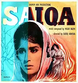 Saiqa is a 1968 Pakistani Urdu romantic film directed by Laiq Akhtar and produced by Shamim Ara in her debut production under Shamim Ara Productions. The film was based on Razia Butt's novel by the same name.[1] The lead cast included Shamim Ara, Mohammad Ali, Darpan, Lehri, and Zamurrad.[1][2]