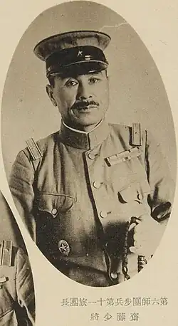 Ryū Saitō (斎藤 瀏, Saitō Ryū; April 16, 1879 – July 5, 1953) was a Japanese Major General and poet during the 20th Century. He is commonly associated with the Jinan incident, playing a major role in the diplomatic and public press of the incident. He was also known for his tanka poetry works.