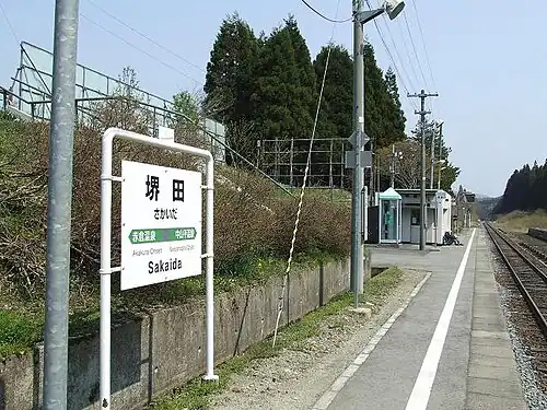 Sakaida Station (堺田駅, Sakaida-eki) is a railway station in the town of Mogami, Yamagata, Japan, operated by East Japan Railway Company (JR East).