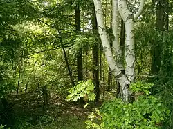 The crest and the slopes are covered with deciduous forests and extensive pastures. The forests are dominated by xerophyte species, such as pubescent oak (Quercus pubescens), Austrian oak (Quercus cerris) and Hungarian oak (Quercus frainetto), with participation of Oriental hornbeam (Carpinus orientalis) and Jerusalem thorn (Paliurus spina-christi). Along the rivers and streams grow silver poplar (Populus alba) and white willow (Salix alba).[1][5] There are also dispersed xerothermal grass associations, dominated by Bothriochloa ischaemum, Poa bulbosa, Chrysopogon gryllus, etc.[5]