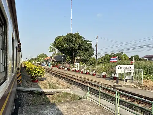 Sala Thammasop railway station is a railway station located in Sala Thammasop Subdistrict, Thawi Watthana District, Bangkok. It is a class 3 railway station located 14.05 km (8.7 mi) from Thon Buri railway station.