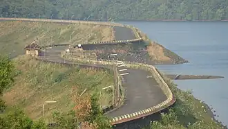 The Salaulim Dam is located on the Guleli River, a tributary of the Zuari River in Goa, India. It is an integral component of the Salaulim Irrigation Project which envisages benefits of irrigation and drinking water supply.[1][2][3] The dam is a composite earth+masonry dam of 42.7 metres (140 ft) height with a water spread area of 24 km2 (9.3 sq mi).[1]