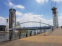 The economy of the city in the 18th and 19th centuries was focused on a major factory district for cotton and silk spinning and weaving, and as a major inland port after the opening of Salford Docks in 1894. Industrial decline in the 20th century led to the city having run-down and antisocial areas.[8] Salford has been subject to slum clearances and other regeneration programmes since the 1930s. From 2007, multiple media companies set up headquarters at the MediaCityUK development in Salford Quays, an area established in the 1980s on former dockland.[9] Organisations in the city include the University of Salford, Salford City Football Club, Salford Red Devils, BBC North and ITV Granada.