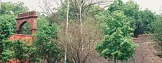 ![]() View of Bahadur Shah Gate at head of Arched bridge linking Salimgarh Fort and Red Fort | |
