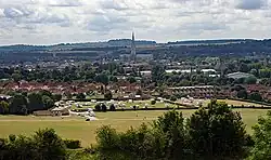 Following the destruction by the Luftwaffe of the Southampton factories building Supermarine Spitfires in 1940, production was dispersed to shadow factories elsewhere in the south of England. Salisbury was the major centre of production, supplemented by Trowbridge and Reading. Several factories were set up in the centre of Salisbury and staffed by predominantly young women who had no previous mechanical experience but were trained for specific tasks in the aircraft construction process. Supporting the factories were many workers producing small components in home-based workshops and garden sheds. Sub-assemblies were built in the city centre factories and then transported to High Post airfield (north of the city, in Durnford parish) and Chattis Hill[32] (northeast, near Stockbridge), where the aircraft were assembled, test flown and then distributed to RAF airfields across England. A total of over 2000 Spitfires were produced. The whole process was carried out in secret without the knowledge of even the local people and only emerged into public knowledge after the production of a film describing the whole process.[33] In July 2021 a memorial to the workers, in the form of a life-size fibreglass model Mk IX Spitfire, was unveiled in Castle Road, Salisbury (near the rugby club) on the site of one of the factories.[34][35]